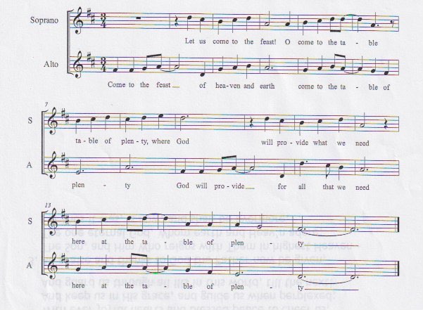 2.) Review the melody to Table of Plenty. Note: this is a common song that we sing for liturgical services in our school.